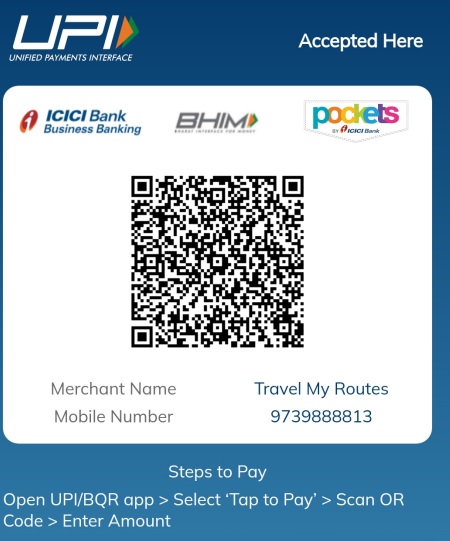 UPI ID : travelmyroutes.ibz@icici